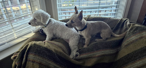 5. Jax is a quick learner. Whenever I leave the house, Stella will stand on a chair and look out a window, watching for my car to drive back down the driveway. It doesn’t matter how long I’m gone; 20 minutes or 5 hours. She’ll stay there until I come back home. She taught Jax that “this is what we do” and now Jax does the same thing.