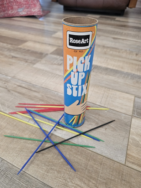 I taught Ella how to play Jacks, although it was a bit tricky. Everytime we said the word “Jacks,” my dog “Jax” would come running into the room, skidding into the “jacks” on the floor, scattering them everywhere – so we had to start referring to “jacks” as “j.” Then I showed her how to play Pick Up Stix. She liked that more than Jacks. I think it was the fact that sticks went flying in the air as she flipped them. Then Ella taught ME how to play Marbles. She learned that on a school field trip. She expained how her class had gone to a place where they churned milk to make butter, beat wheat to make flour, and then made biscuits to eat. They also learned to play Marbles, because that’s what the kids did in “the olden days” when they didn’t have “any toys!!, no ipads, or anything at all to play with!!!” I