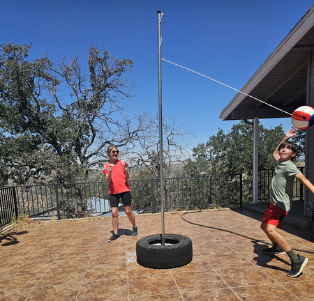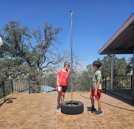I challenged Owen to a tether ball match, and told him I “used to be” pretty good at it. He said to remember that the “key word in that sentence was “used to be,” and, of course I took that as a challenge. But you can see from my posture that even though he’s only 11, I was a bit nervous about the strength behind his hits, and yeah… he annihilated me again… 4 times in tether ball… and after the 2nd game he switched to his non-dominant hand… BUT I do have to say that in the middle of the 3rd game he switched to his dominant right hand – guess I had him worried he might actually lose that one. Ha!
